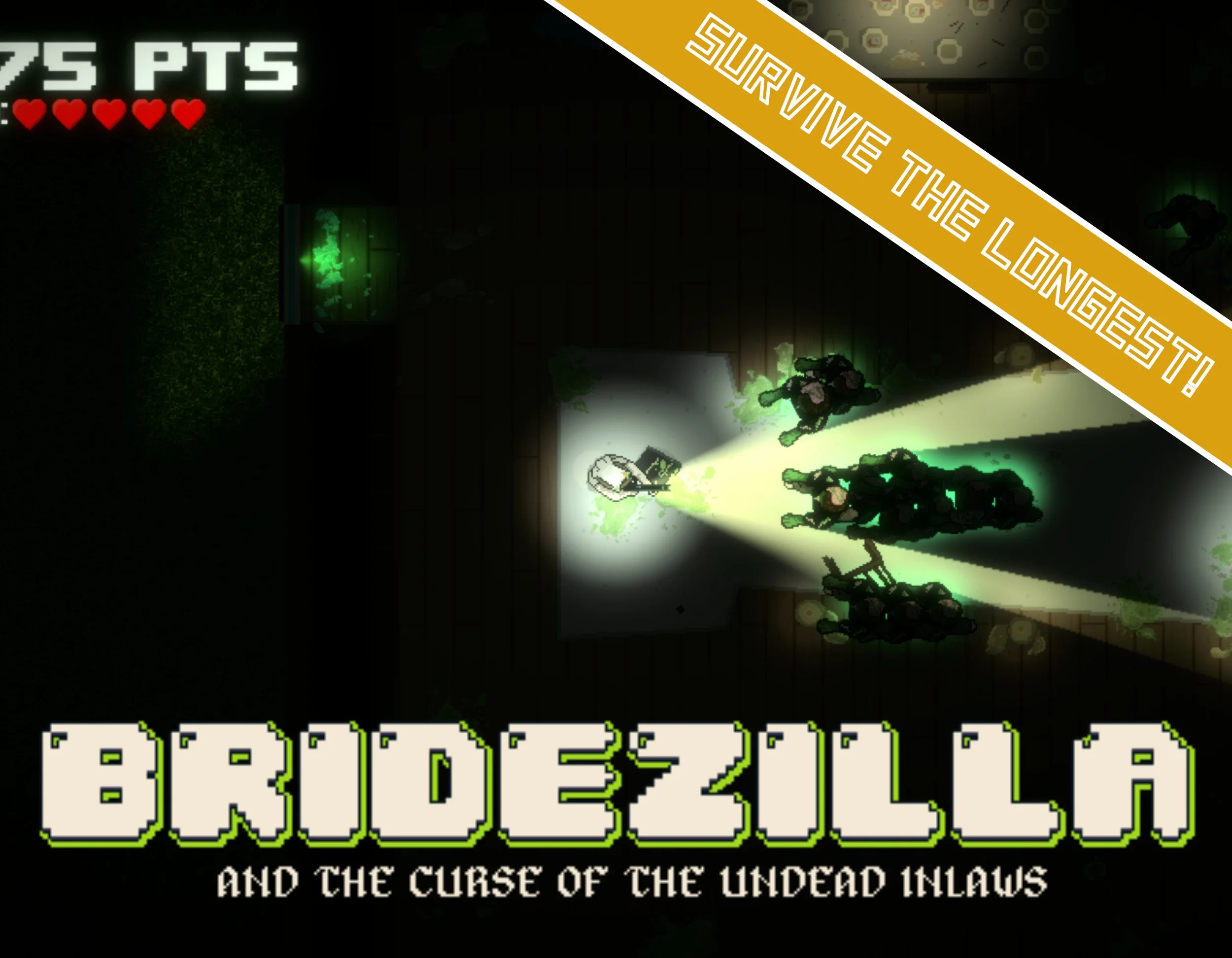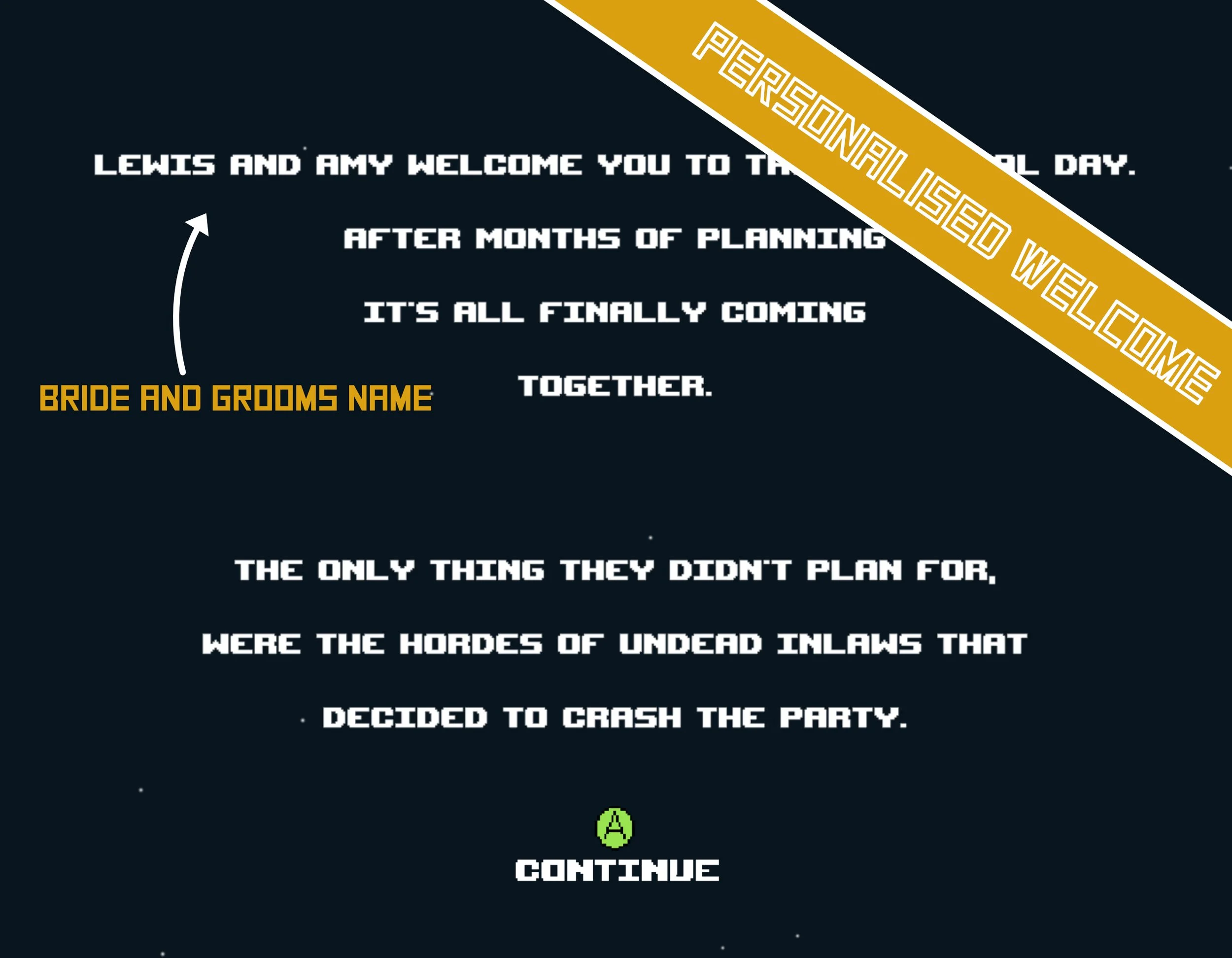 Bridezilla is a high score, top down shooter that pits the player against never ending hordes of the dead. A great opportunity to create some healthy competition and fun at a wedding reception, stag do or hen party.